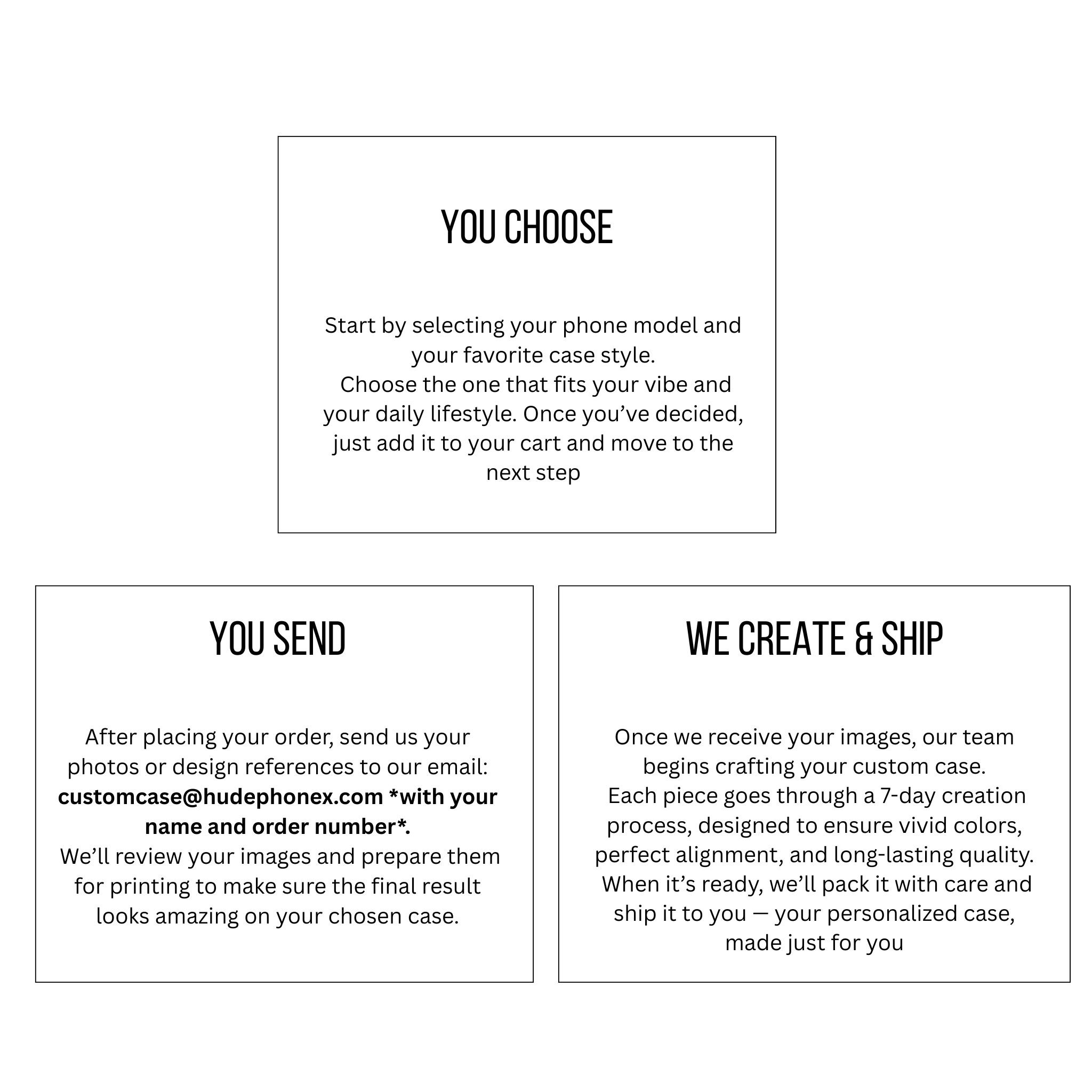 Please contact us within 7 days of receiving your order with photos, and we’ll replace or refund your item. help@hudephonex.com